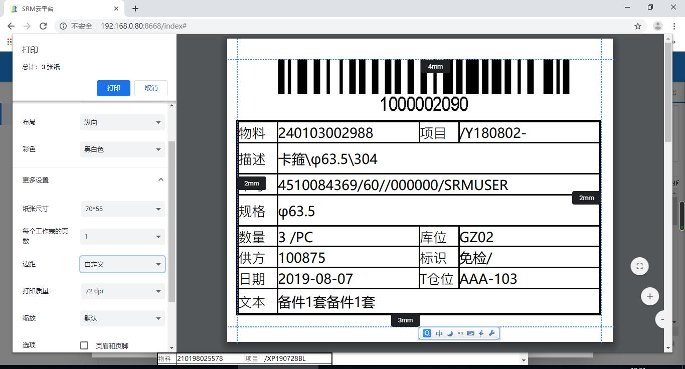 5.打印的时候选择自定义,然后修改上下左右边框各3MM,进行打印