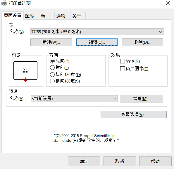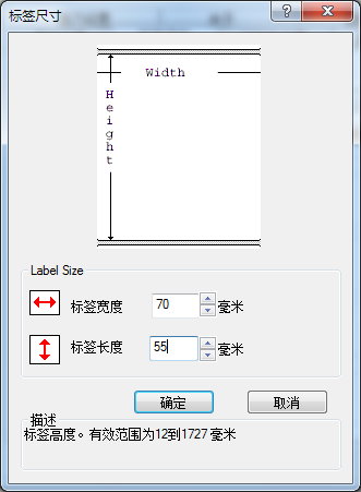 1.纸张定义参照上面的打印机标签纸定义为:建议宽度设置70mm,高度设置55mm。