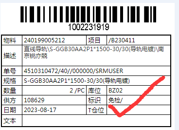 随着我司订单量高峰期的到来,仓库收货任务越来越重,仓库收货员在区分免检与物料检物料不及时,翻查物料花费过多的时间,导致物料入库延误。现请各供方给与支持与配合,对免检物料送货前做标识,标签上用红笔打钩(如图),便于收货入库后能将免检物料快速入仓。执行时间:即日至12月31日。(注:物料检物料按以往方式,不需要做任何标记)